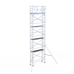 6) Rolsteiger Euroscaffold voorloopleuning Dubbel 1.35 x 2.50 x 9.2 meter werkhoogte vrijstaand