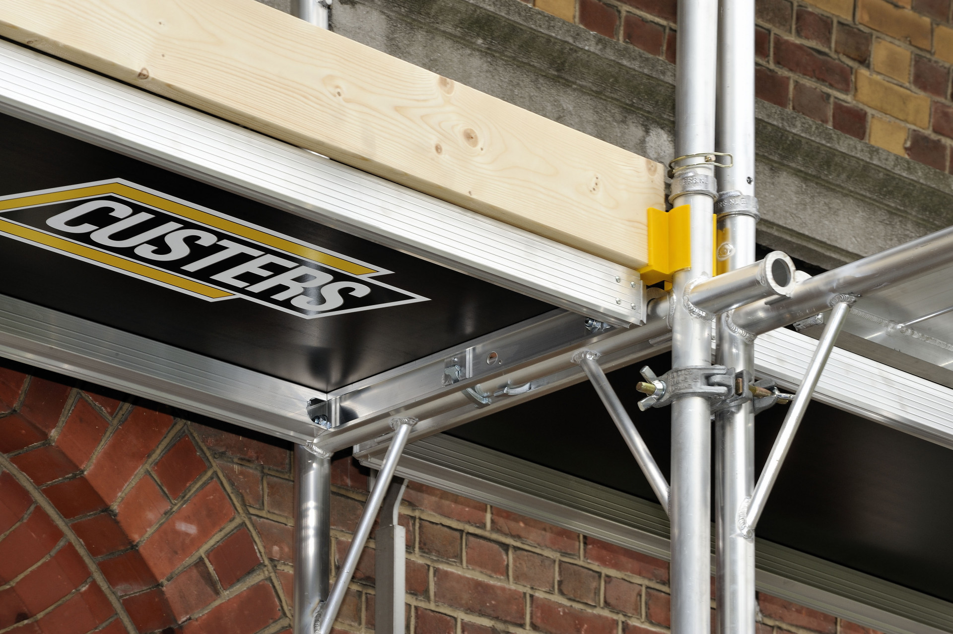 Onderdelen zoals platforms en horizontale schoren zijn ook compatibel met het Custers rolsteigersysteem.