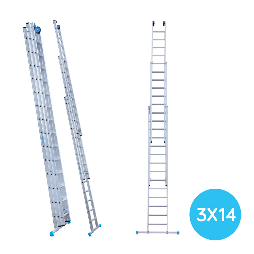 Op zoek naar een voordelige driedelige ladder voor professioneel gebruik? Deze opsteek-ladder is perfect voor professionele klussen, heeft een extra brede tree waardoor werken stabieler gaat en dankzij het lichte gewicht van minder dan 31.4 kg ook gemakkelijk hanteerbaar en te verplaatsen. Gemaakt van uitgebogen aluminium.